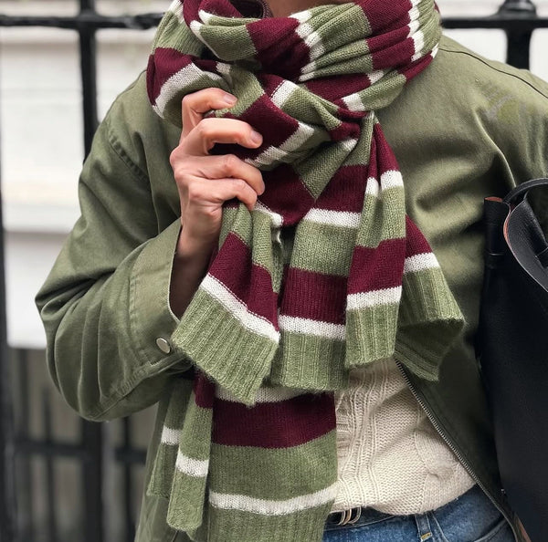 We like to wear our 100% cashmere oversized scarves around our necks in the most relaxed way possible. That's the way we think they look the best!